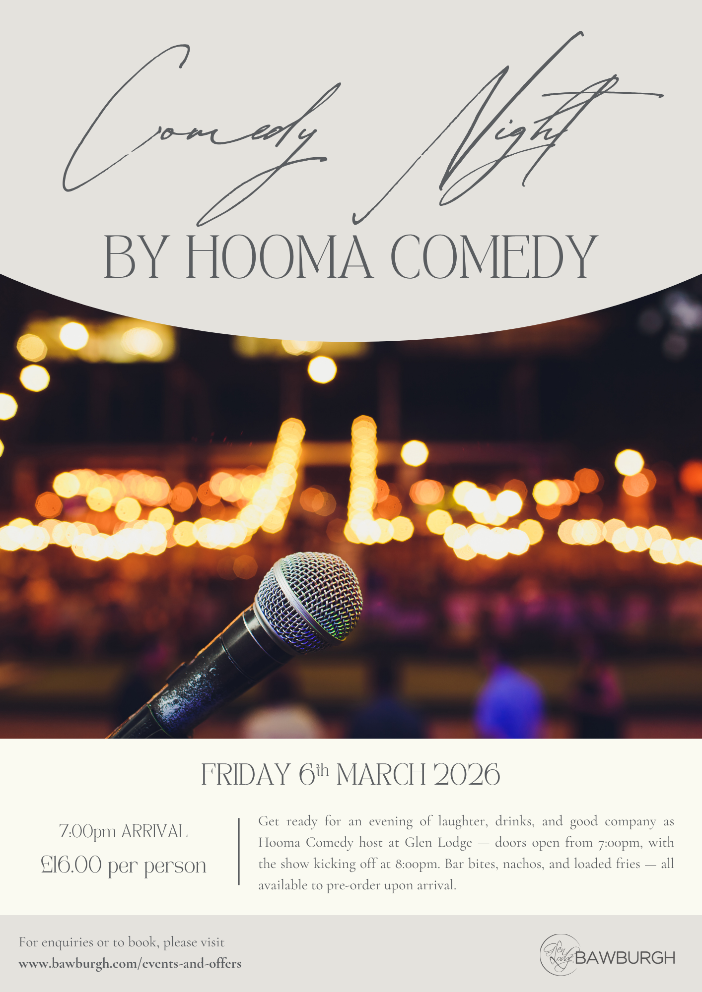 Join us on Friday 6th March 2026 at Glen Lodge — doors open from 7:00pm, with the show kicking off at 8:00pm.